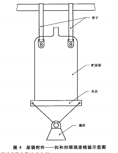 將載荷作用在貯尿袋上24 h士1 h。目測檢(jiǎn)查扣和(hé)扣眼的破損情況。